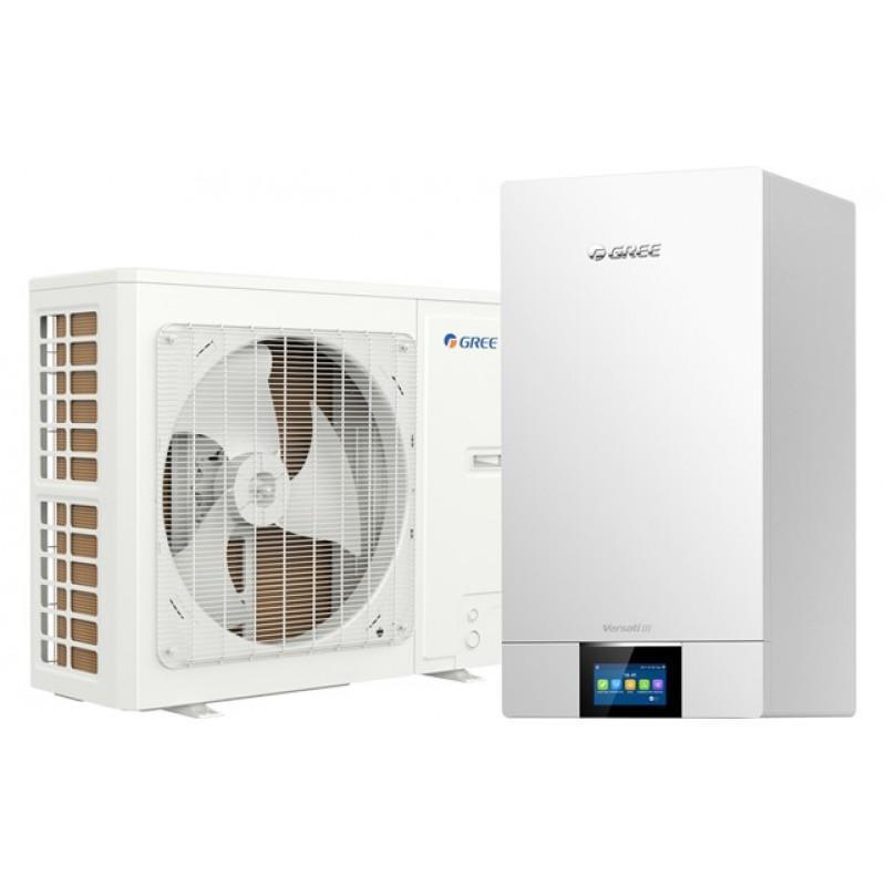 Тепловые насосы Gree GRS-CQ12Pd/NhH2-E серии Versati III (сплит-системы) «воздух-вода» с инверторными компрессорами с впрыском пара предназначены для нагрева воды для горячего водоснабжения или напольного отопления, а также для отопления или охлаждения воздуха в помещении до 120 кв.м.Особенности и функции Gree GRS-CQ12Pd/NhH2-E